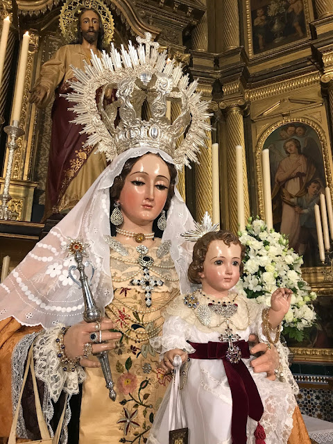 La presentación de la Santísima Virgen a los fieles es fruto del buen hacer y devoción de su vestidor y de las camareras que trabajan en silencio para realzar la belleza de la Reina del Monte Carmelo.
