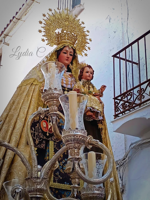 Antes de producirse aquella estampa, entorno a las 20:00 horas, el repique de campanas de la Parroquia anunciaban la salida procesional de Nuestra Señora del Carmen, este año en andas procesionales portadas por costaleros de la cuadrilla de la Virgen y comandada por los capataces Juan Cantero, José Antonio Uceda y el contraguía Alberto Gallego.